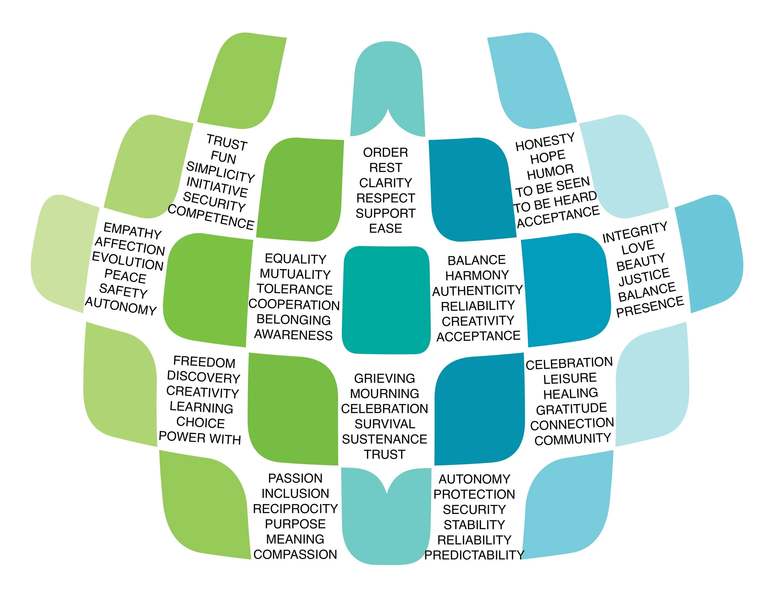 We are the only one that can determine whether or not these needs are fulfilled. We perceive this only for ourselves. You can connect with your own needs and what you value most at any moment. It is surprisingly soothing sometimes to say to yourself, “I really value support” or “I really need understanding” This is called self empathy.